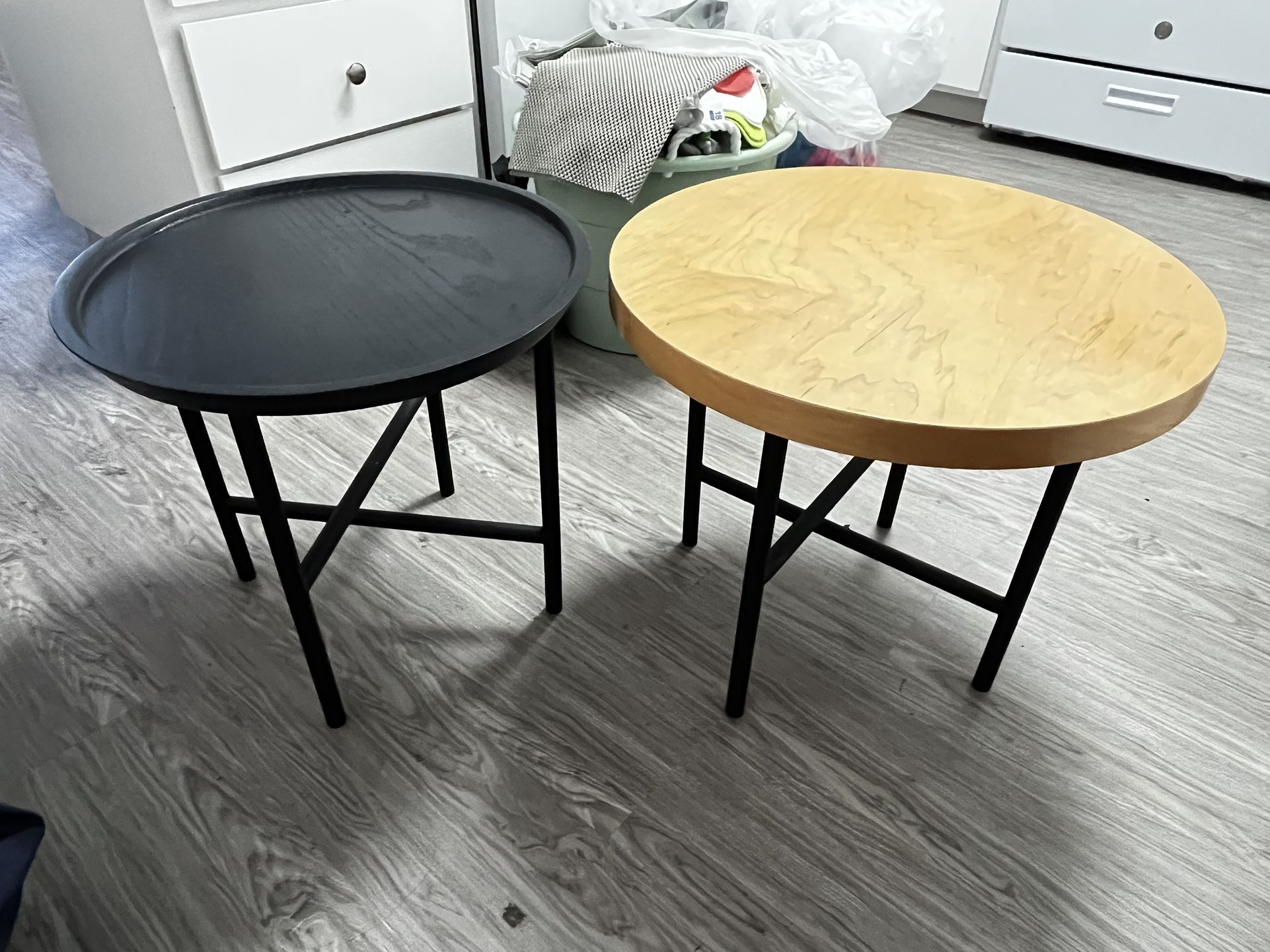2 real wood side tables Black table- $15 Beige table- $30 $40 for both
