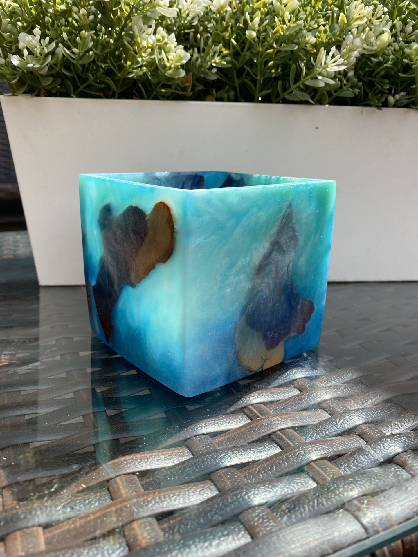 Resin and wood succulent flower pot- comes with a planted succulent!!
