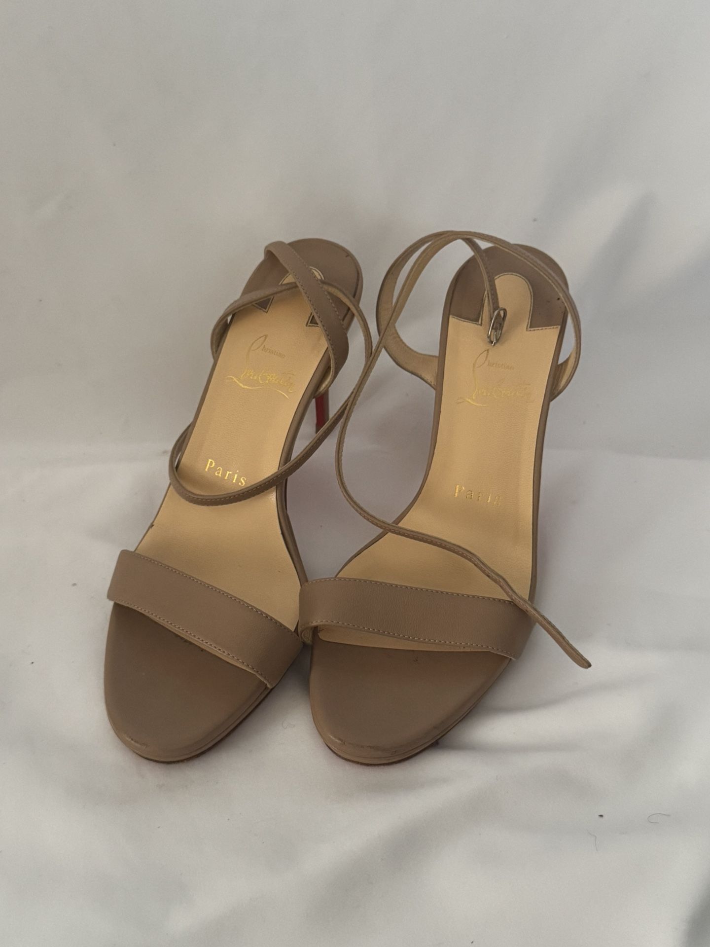 nude leather heeled sandals. Size 38 (8) Used