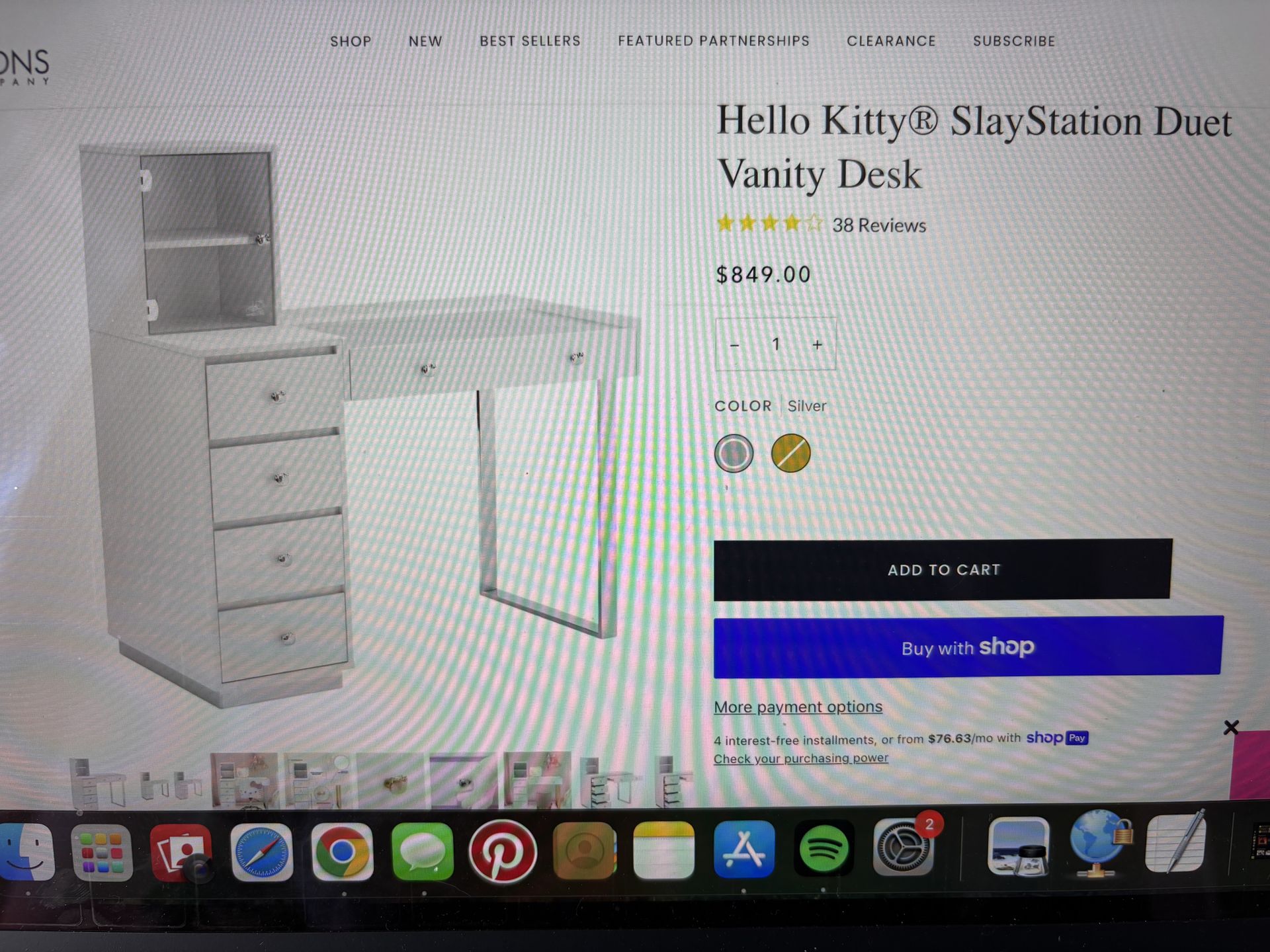 -bought BRAND NEW IN BOX for total:1100 tax included -selling more than half because I need gone -literally new -owned for 1 year -LED lights + different color modes -no major damage (1 small chip) -drawers all perfect condition/functional -inside drawers kept cleaned I used liners -comes with mini hello kitty mirror -silver knobs -no scratches or damage to the mirror or glass