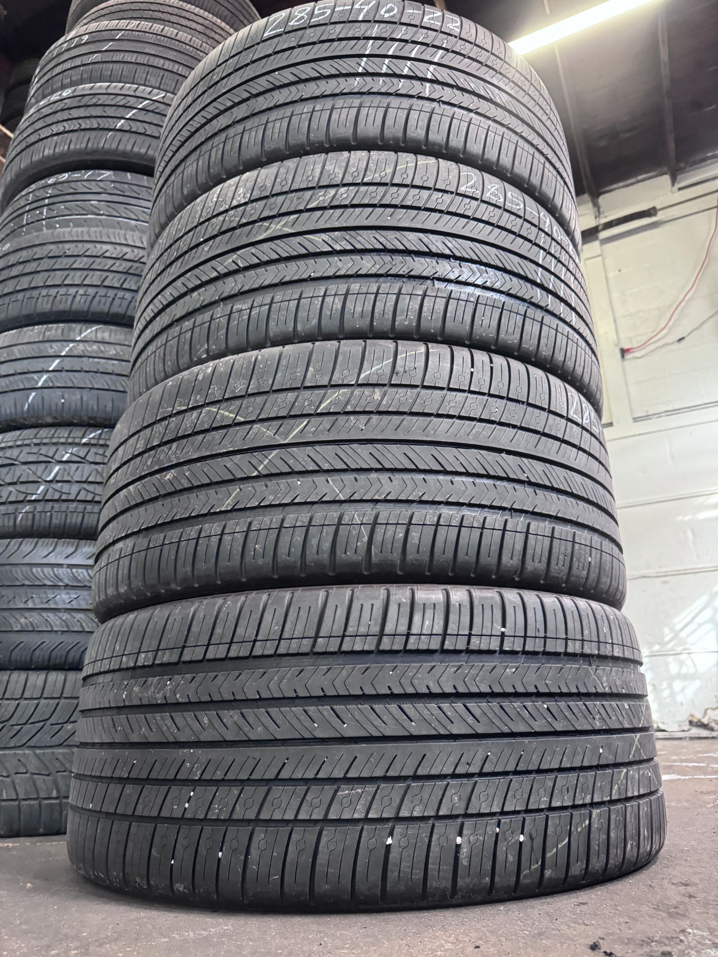Installation and balance included in price. Set of (4) 285/40R22 Michelin Pilot Sport 4 model all season tires. Good tread life on all 4 tires. Shop located at 817 St Charles Street, Elgin IL 60120.