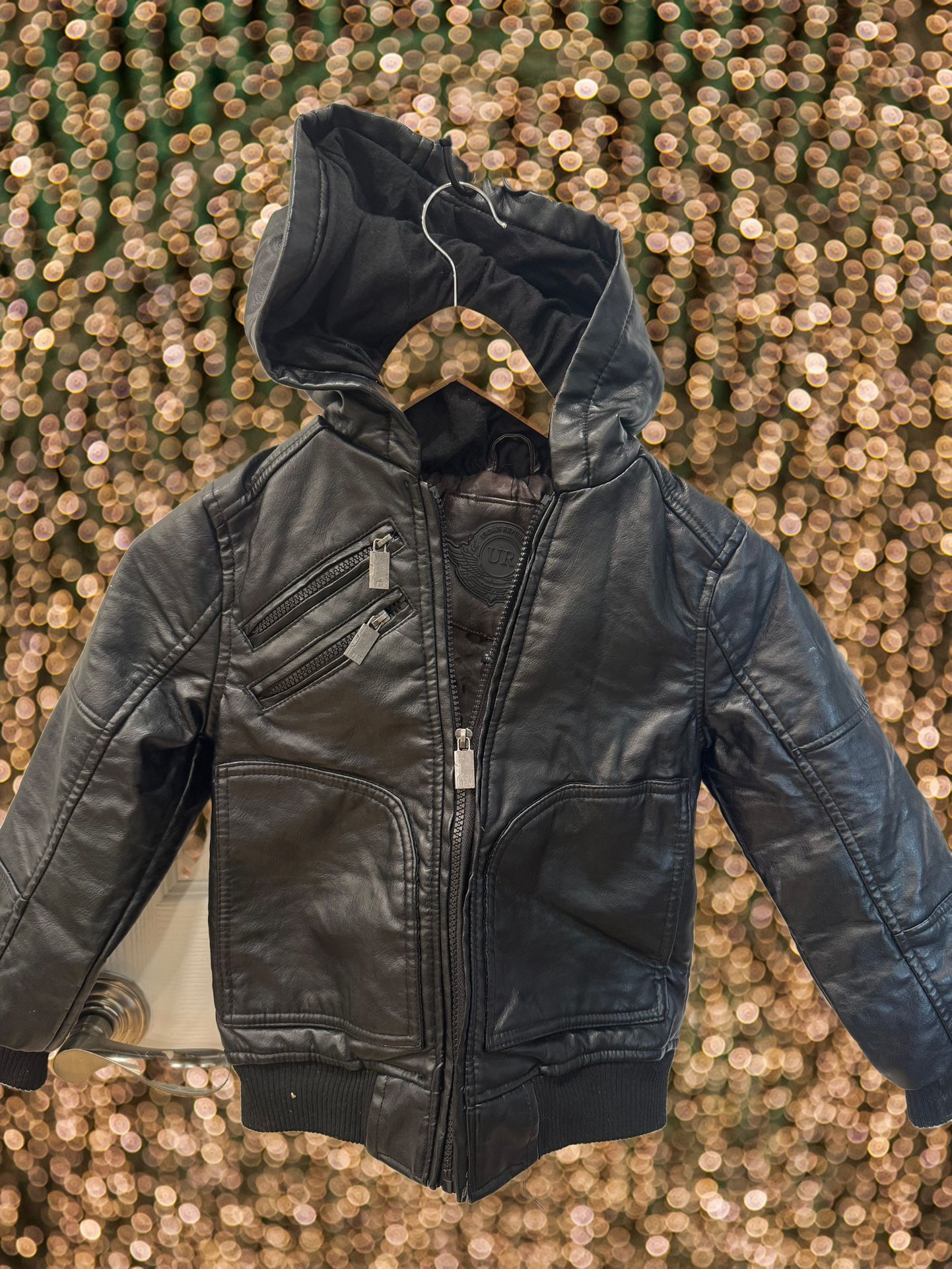 A beautifully maintained black leather jacket in excellent condition, rarely worn and perfect for an 8-year-old to enjoy during the holiday season. Quick delivery for an extra 7 $. Thank you!