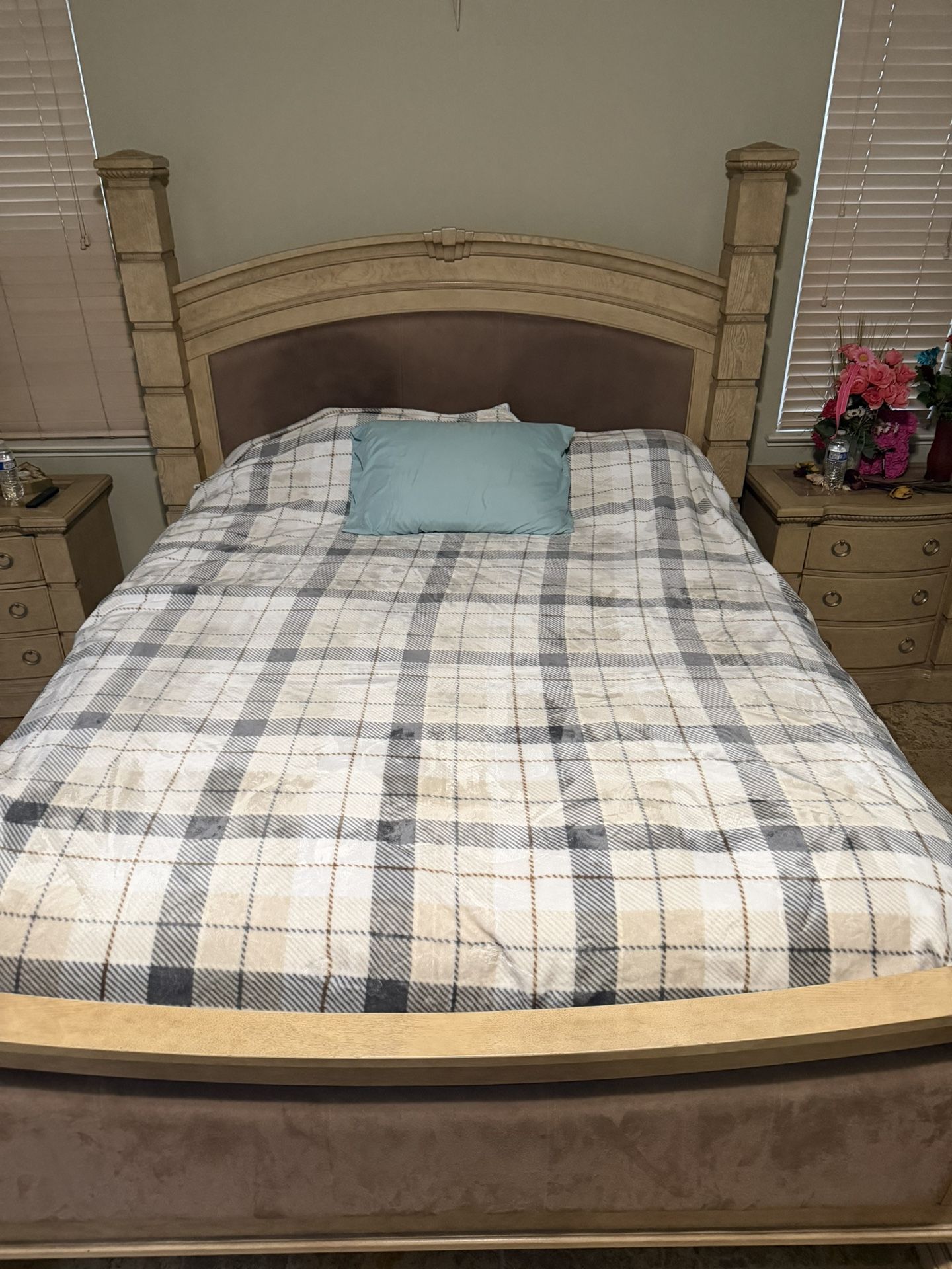 Solid wood complete bed set.
