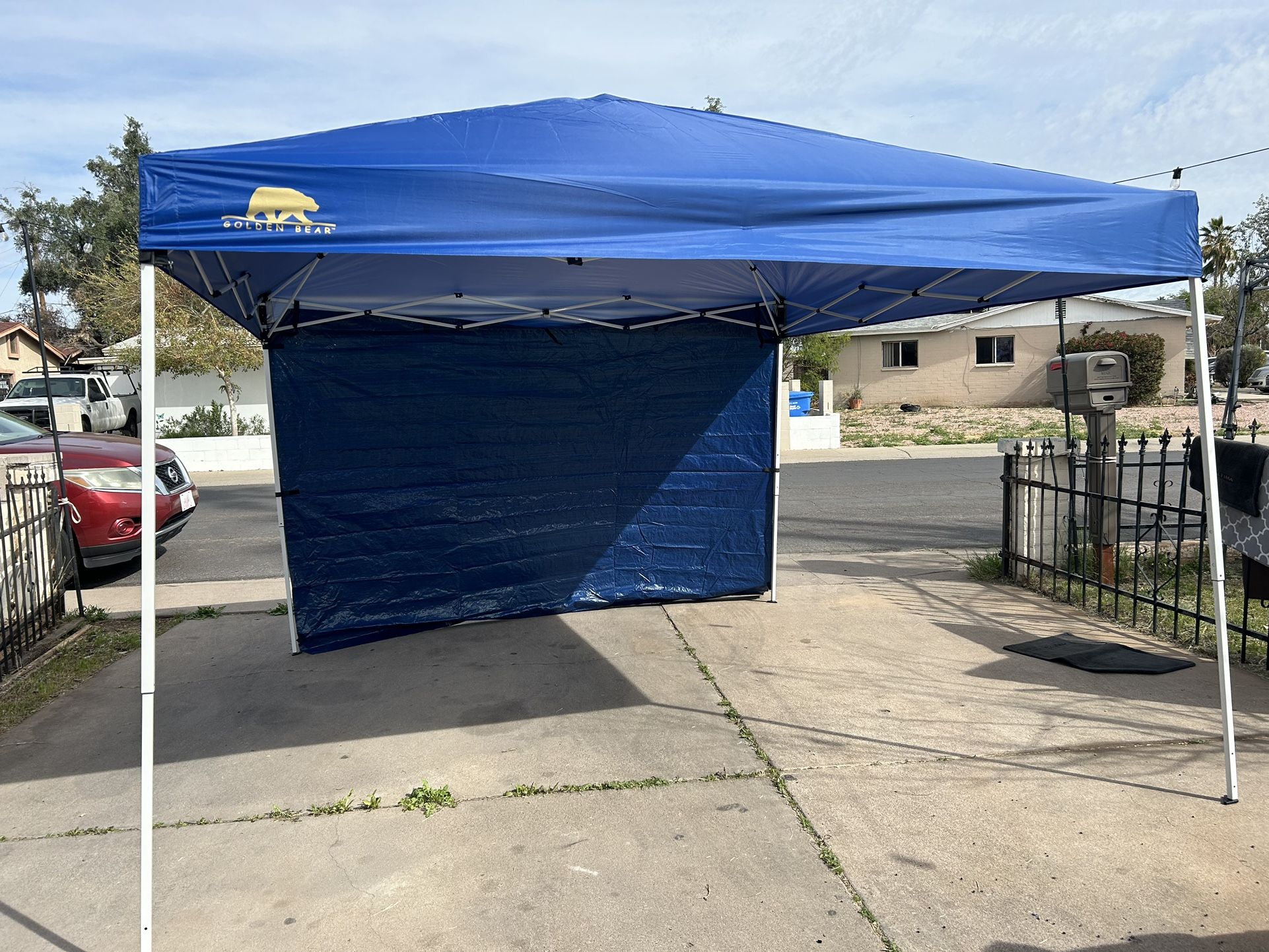 Brand new canopy blue color with 1 wall 10x10 Canopy color azul con una pared nueva nunca usada 10x10