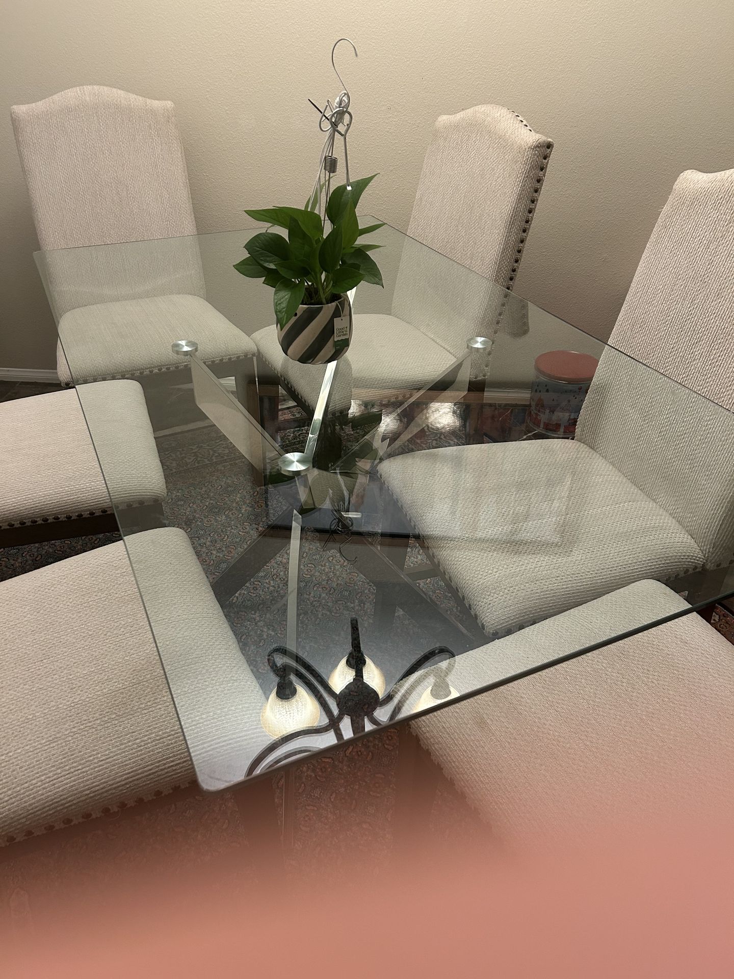 Glass dining table for 6 seats like new