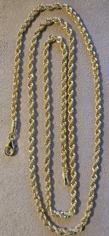 Brand New, Never worn 14K Gold Over .925 Sterling Silver Semi Solid Italian Made 22 inches length 3.5MM Width Stamped 925 ITALY Real 14K Gold Over Authentic Real Silver, Not plated or dipped Original Pick up only The Price of Silver Is Rising Everyday! El precio de plata sigue suviendo cada dia! I have different style chains, bracelets and sizes, check out my posts for more Perfect gift for the Holidays Se Habla Español Nueva nunca usada Auténtica 100 por ciento Plata No es plateada o sumergido en plata Tengo diferente estilos y medidas, revise mi publicación Tags: Christmas, Birthday, Anniversary, Gift, New Year, Celebration Regalo de navidad, cumpleaños, aniversario, regalo, celebracion, nuevo año