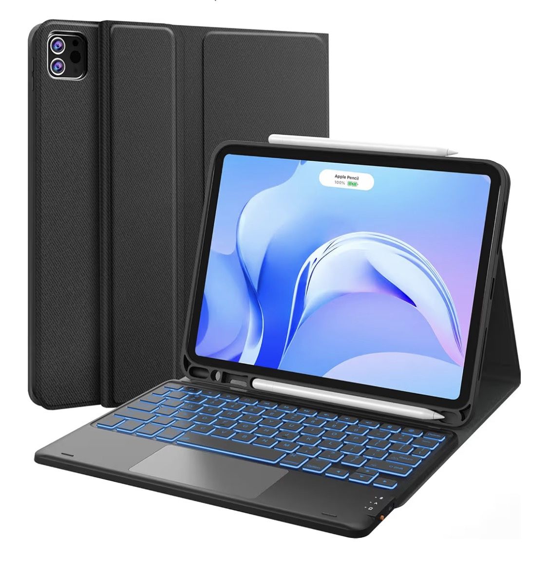 Keyboard Case for iPad Air 11” M3/M2 (2025/2024), 7-Color Backlight, Multi-Touch Trackpad, 2 Wireless Channels, for iPad Pro 11 (4th/3rd/2nd/1st Gen)