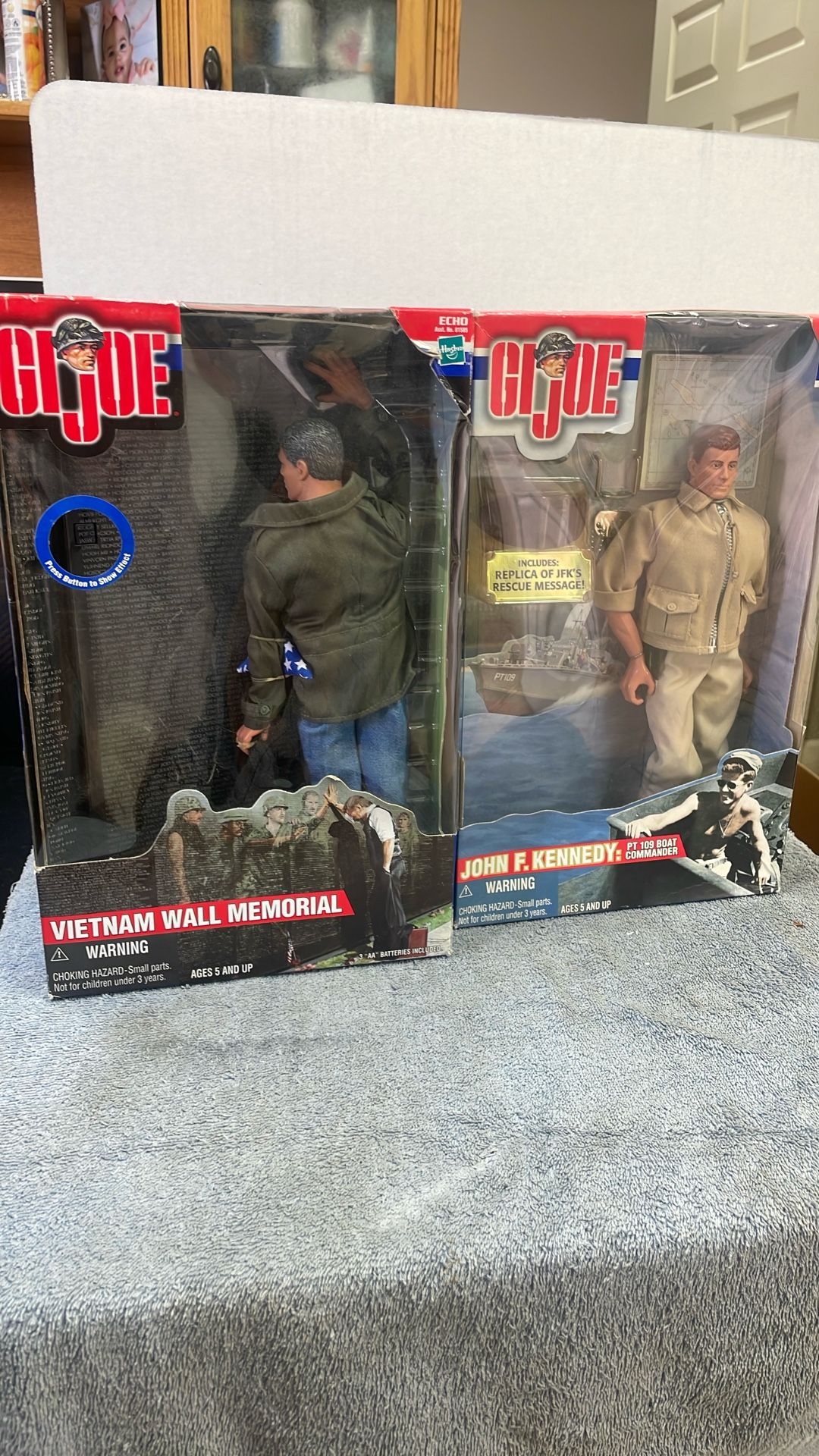 Unopened G.I. Joe figurine, Vietnam wall memorial and a John F. Kennedy PT 109 Boat Commander