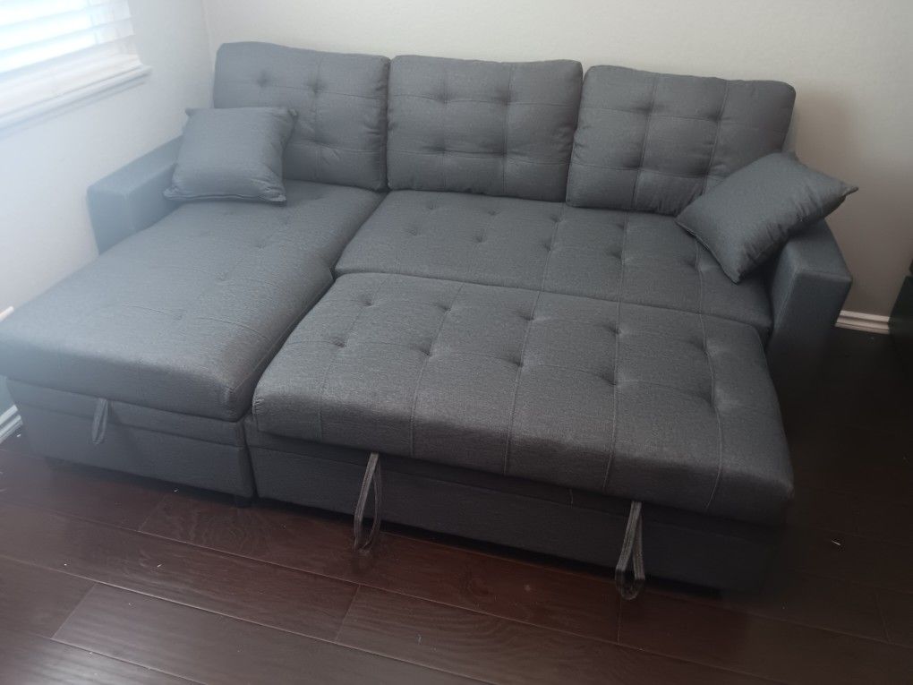 Also available in Ash Black(Microfiber) Color: Blue Gray Material:microfiber Dimensions Overall: 88" x 57" x 33"H; Sectional w/ Pull-Out Bed: 88" x 57" x 33"H ; Reversible L/R Chaise w/ Storage: 32" x 57" x 33"H Brand new in the box straight from distributor 6 month factory warranty included. Do offer delivery and assembly