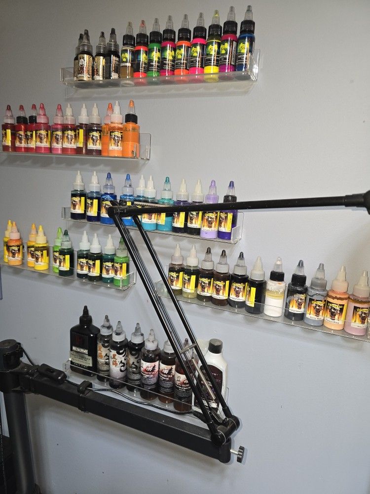I have a ton of tattoo equipment for sale or trade its a package deal I will NOT peice out ! Ink bed chair and work station ,arm rest ,thermal transfer machine, I have cordless machines and standard coil machines, several rotory machines there is enough equipment to run and shop or tattoo your buddies at the kitchen table what you doing with it ain't none of my business everything you see in the pictures comes with it except for the green toolbox but will at it for the right price there's a ton of stuff not in the pics too interested in trades for bangs????