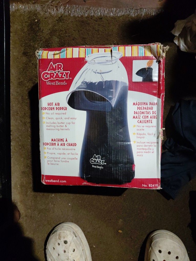 Hot air popcorn popper. No oil required. Clean, quick and easy from Air Crazy.