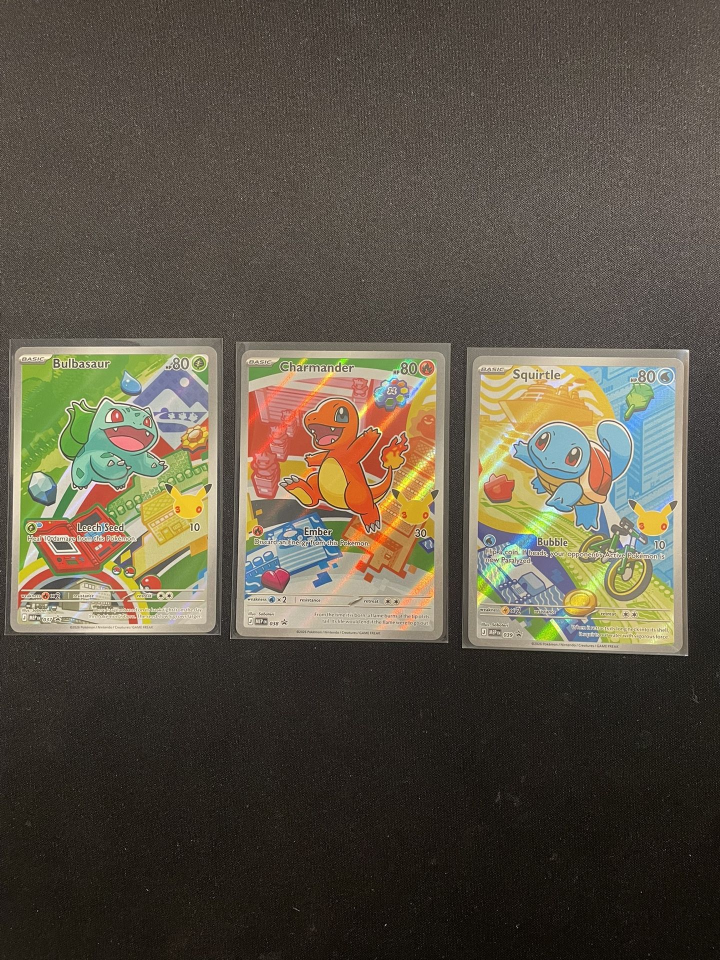 Selling the Charmander, Squirtle, and Bulbasaur kanto starters as a set. Pack fresh and all mint/nm.