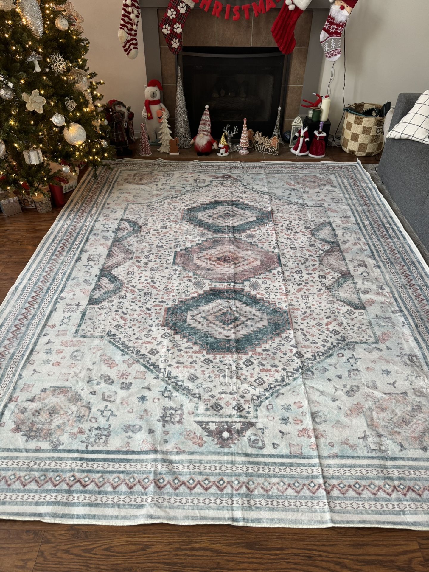 Brand new 8x10 Area Rugs for Living Room Bedroom, Large Vintage Prints Low-Pile Washable Rug with Non-Slip Backing, Soft Thin Throw Carpet for Dining Room Classroom Dorm Home Decor, Teal White I have 2 For 1 - 65$ For both - 120$