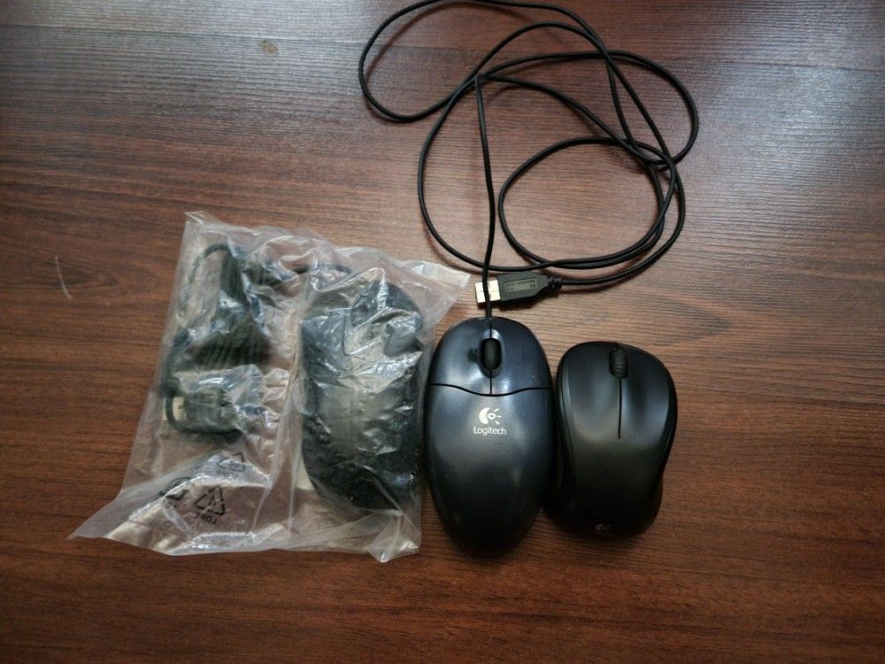 Here is the list of these mouses: Dell USB Mouse: Brand New Condition (Never Opened) Logitech USB Mouse: Used with some minor fade near the scrollwheel, but it still works perfectly fine Logitech Wireless Mouse: Looks like used, but the power switch is broken and it stuck in the ON position and drains the battery quickly (Battery not included) but it still works regardless.