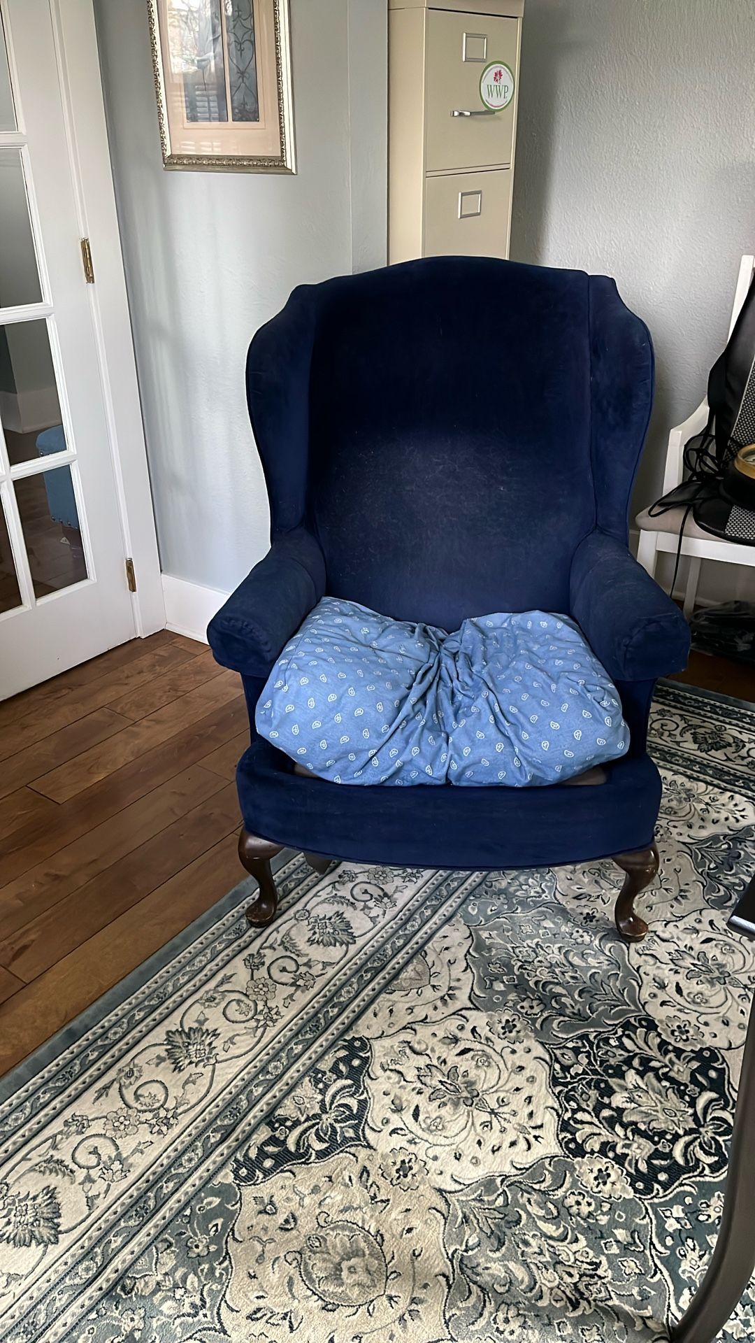 This classic 45 year old wingback chair needs a new home. It’s a great project for folks who reupholster as a hobby, or those who love to restore antiques.