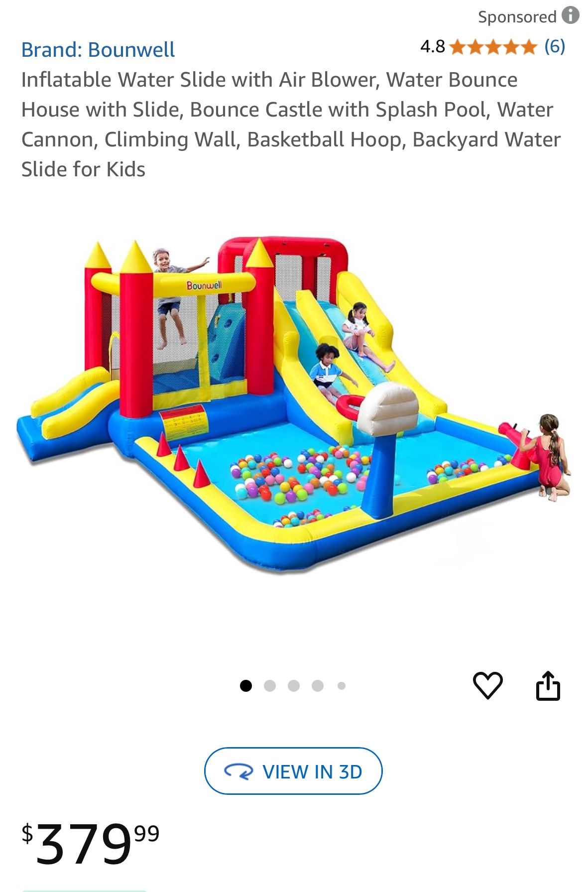 Inflatable Water Slide with Air Blower, Bounce House with Slide, Bounce Castle with Splash Pool, Water Cannon, Climbing Wall, Basketball