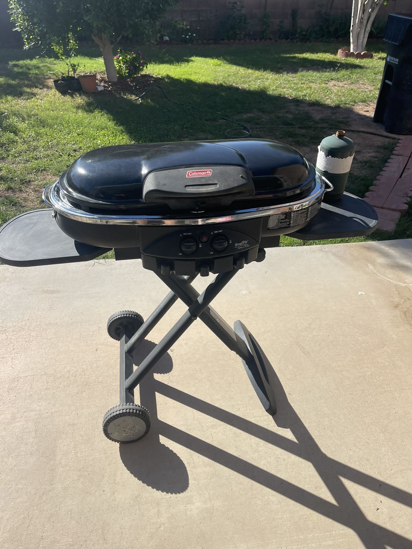 Folding Barbecue Coleman Rod Trip Up stand Grill W Extra Grilled N Bottle