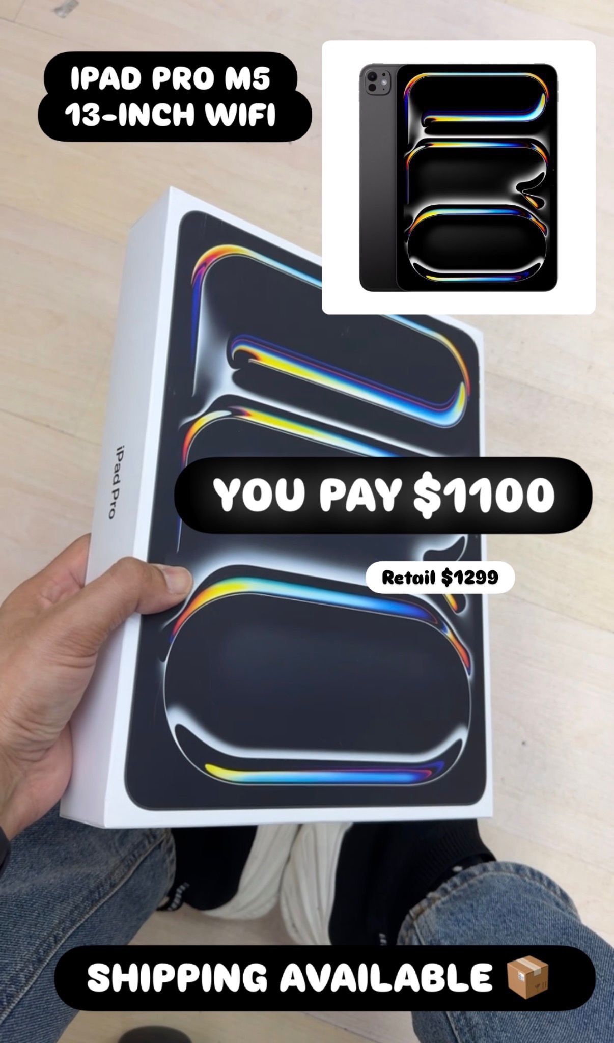 iPad Pro M5 13 inch WiFi 256GB Full price $1100 The $49 option is a financing plan. With $49 down and approval, you take your items home today. I just need your phone number to send the 5-minute application. Our store location is Cellphone Hospital 5959 Hillcroft St Houston TX 77036 (Monday to Saturday 10am to 7pm)