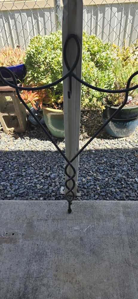 3 hanging plant stands Heavy duty ground anchors 2 are 5+ ft 1 is about 3+ feet Iron
