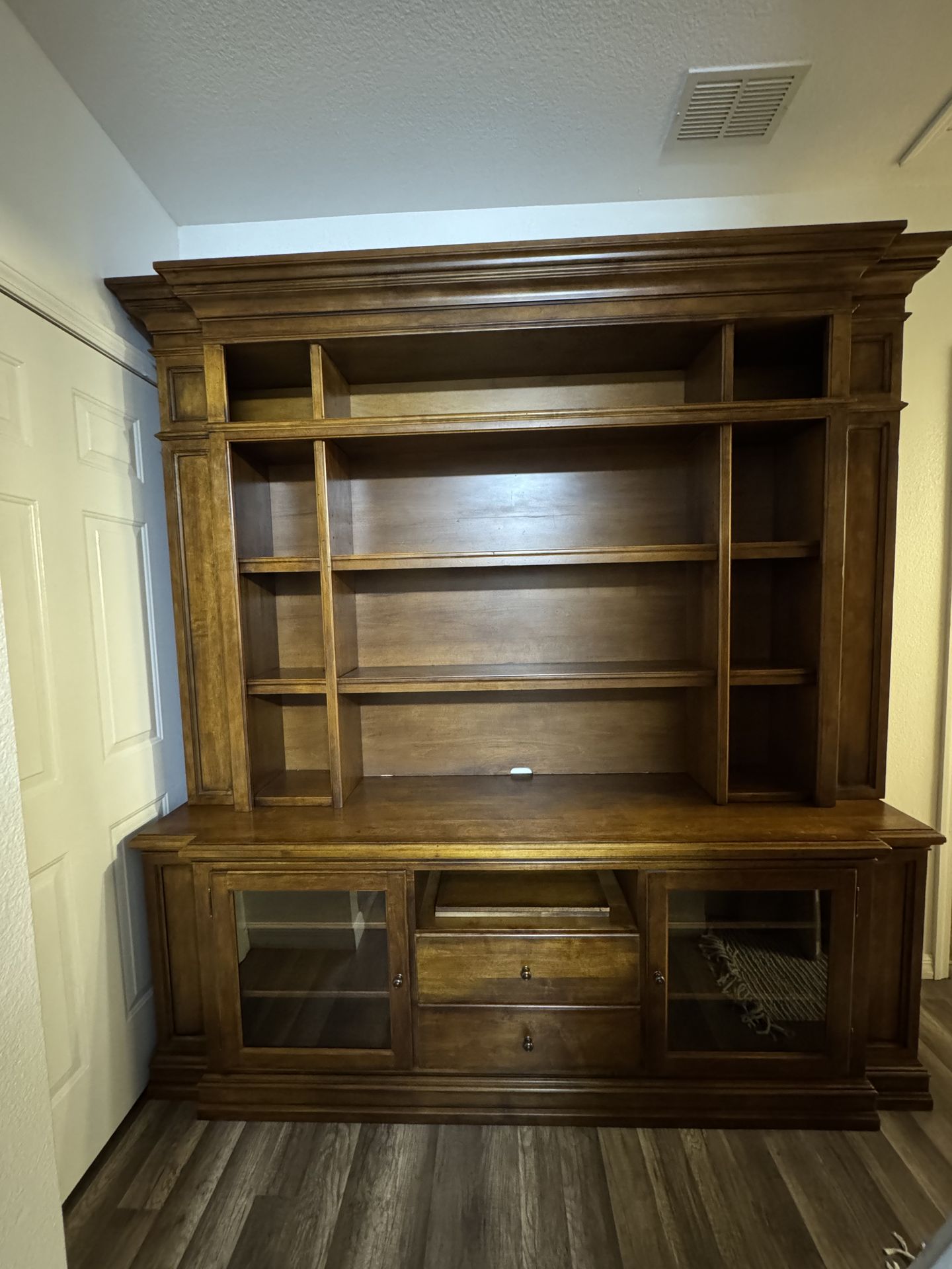 Beautiful entertainment center/bookshelf! It great condition to big for the space we need it for. Hidden cubbies on each side. OBO