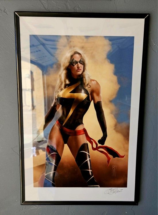 Miscellaneous superhero art. Superman is metal sign. X-men is on wood. Silver Surfer is $10. Deadpool and Captain Marvel are $5 each. Located off Tangerine and Thornydale.