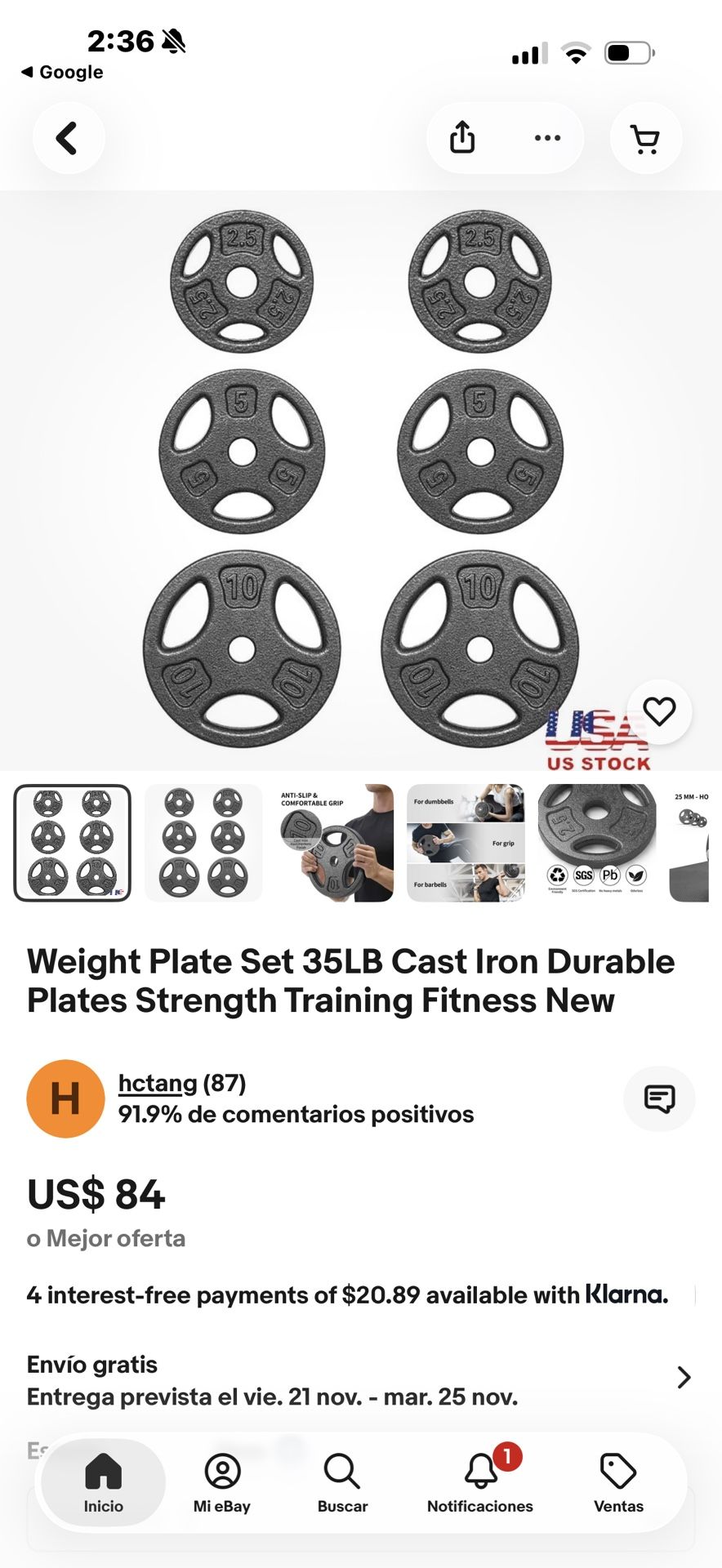 2 de 10 , 2 de 5 y 2 de 2 1/2 total de 35 libras son 6 discos nuevas en caja