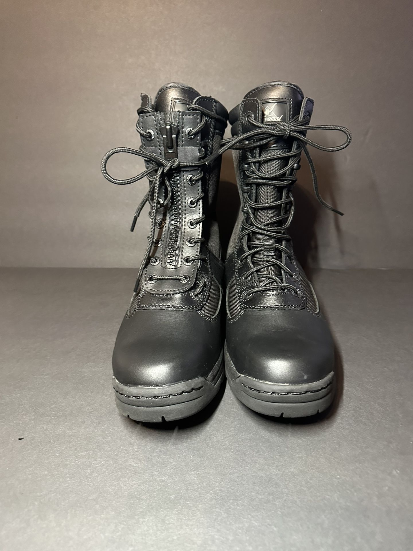 Thorogood Boots Leather l MFG Made In USA Men 7.5W Women 9.5W The boots have identical numbers on the tag they look the same left and right is good but one boot has Zip and laces the other one just has laces They look like the same boot and our butt with different characteristics. Please look at last picture. Make sure this is a boot that you want regardless sold as this no returns on this item. Inv#HR2-boots