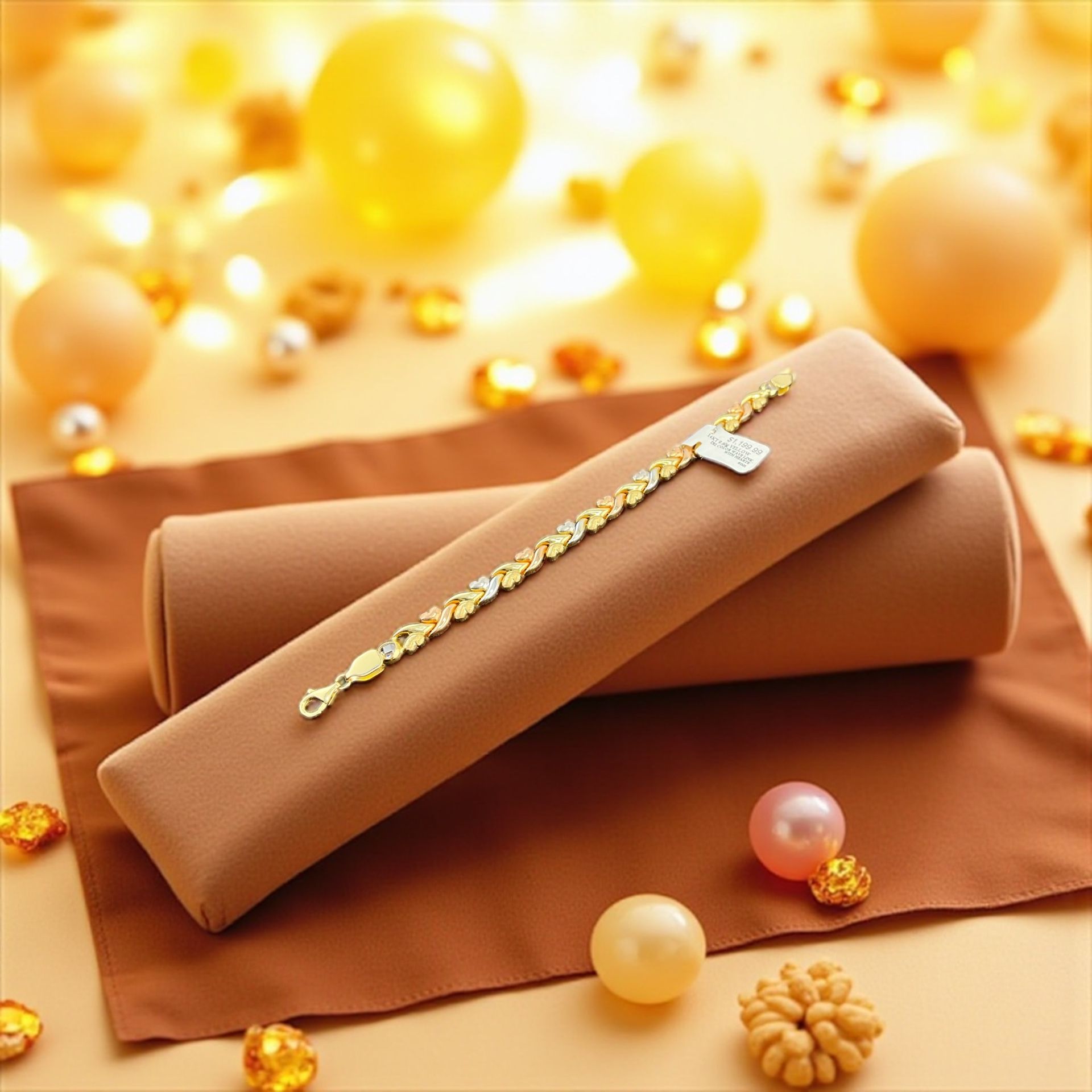 14K TRI-COLOR WAVE LINK BRACELET WITH HEARTS