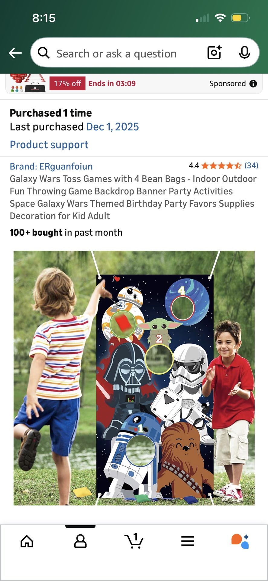 Star Wars bean bag game $10 Star Wars birthday banner $10 $20 for both