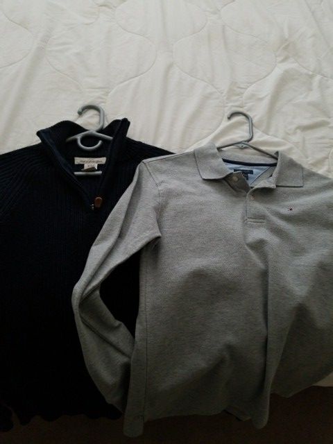 They've siiting in my son's closet for a quite some time already. NEVER wore them. One is size 10/12 (h&m), the other one is size 12/14 (TH).