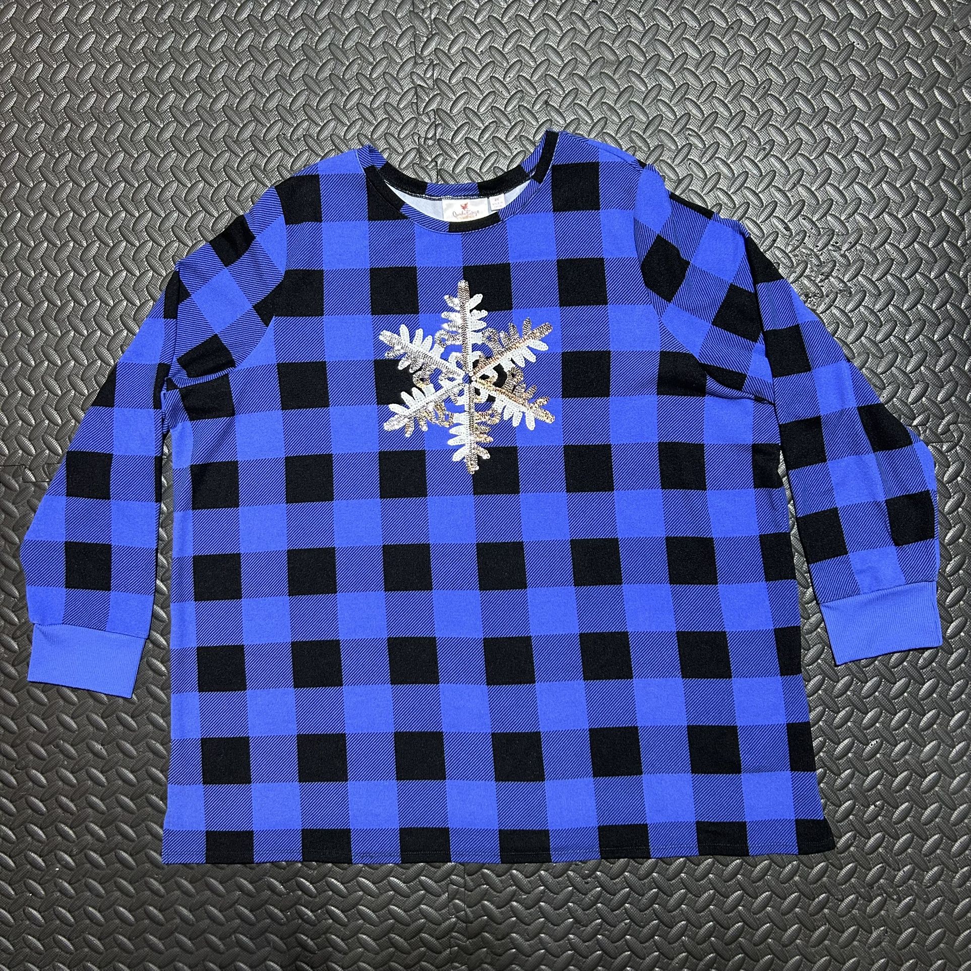 Quacker Factory Sweater Sequin Snowflake Holiday Christmas Blue Plaid Womens 2X