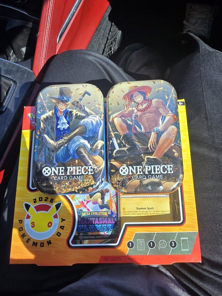 Sealed One Piece Sabo Tin (OP-13) looking to trade for Pokémon product. Open to all offers.