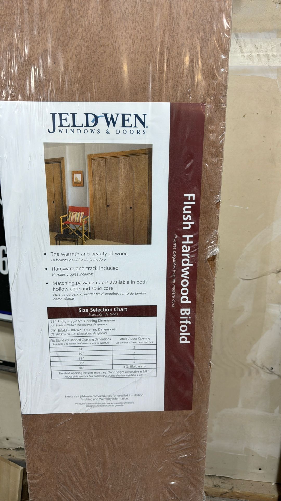 A pair of bifold doors. Smooth panel hardwood. Brand new in package still. 24” x 80 1/2”