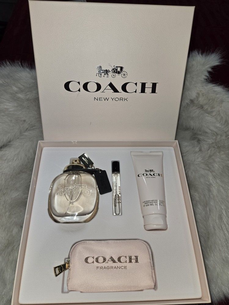 Coach New York Eau de Parfum 90ml 3oz 4 Pc Gift Set With Samples Included Brand New set Original $75 firm