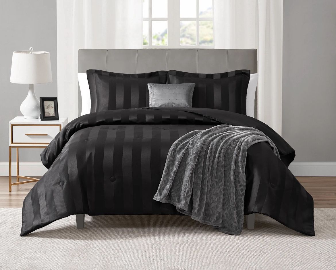 This comforter set comes with - 1 comforter - 2 pillow covers - 1 decorative pillow cover - 1 Throw Blanket - King size This is brand new and never used! Still in packaging. Asking $45 obo motivated to sell shoot offers