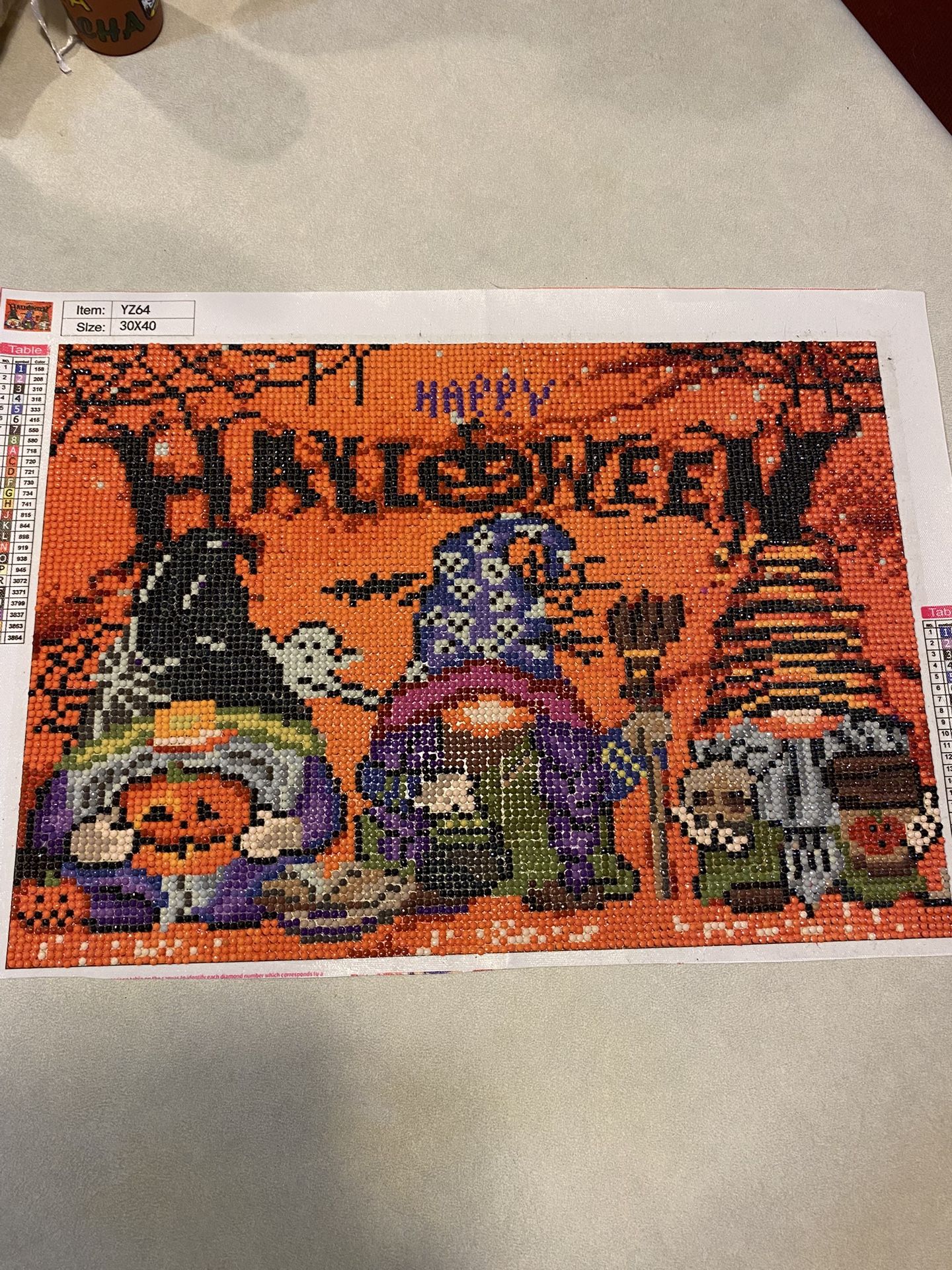 Gnome Halloween diamond painting. 30 x 40 $35 each, or 2 for $60