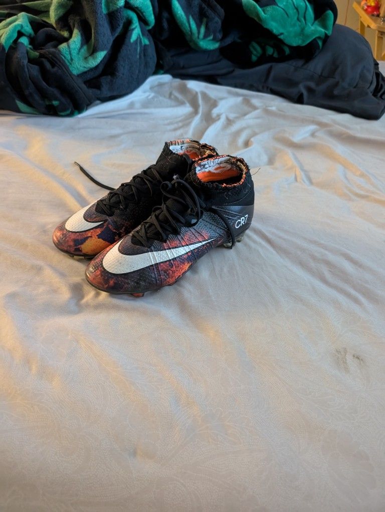 So here's the story behind these ive had these since 2015 released date used them about 4-5 games I decided to modify the ankle knit upper that felt was too high I cut them to a mid length and stitched a elastic band to kept them snug , YES they are original can come take a look at them legit check them I can send you more pictures from the inside label if you like they are directly from Nike and I don't have the original box it's been 9 years didn't even think I'd have these today ! So very rare shoe not meant to be kept in a box obviously soccer cleat so obviously pricing at the price of someone using them not for collecting because I cut the upper ankle knit