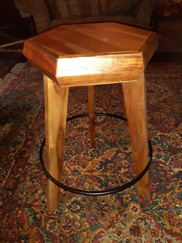 Heavy wood Bar stool 14 inch seat , 27 inches in height with metal foot rest