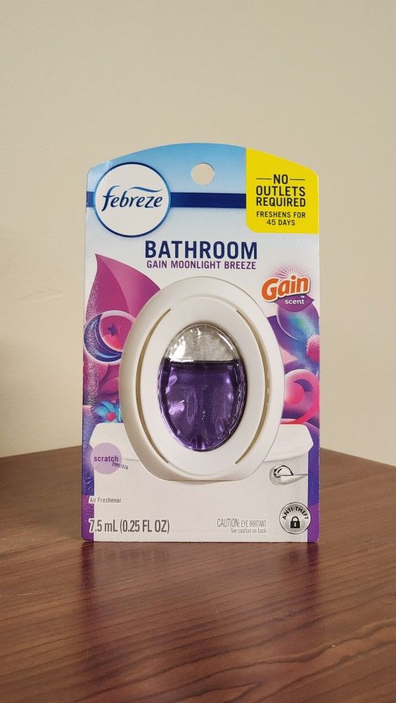 Keep your bathroom fresh every day with Febreze Bathroom Air Freshener. Designed to fight odors at the source, this compact, mess-free freshener delivers continuous freshness without the need for sprays or plugs. Compared to typical retail pricing of $3.44 (Walmart), you will be getting a deal for only $3 each. Scents Available: Gain Moonlight Breeze Gain Original Linen & Sky Please feel free to reach out on any inquires on this listing or others. Pickup Only