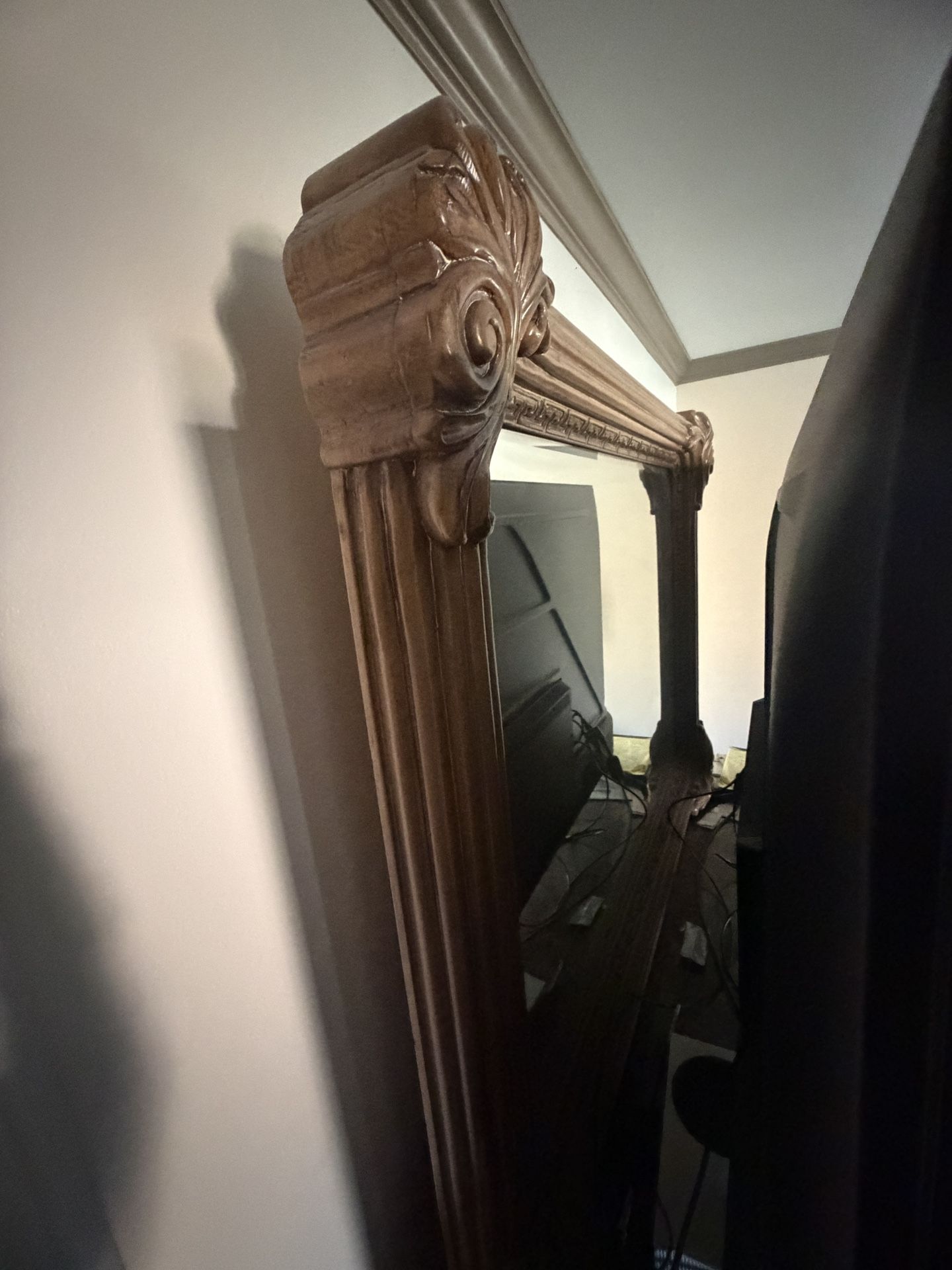 Solid wood dresser with matching mirror and genuine marble top, made by Orleans International. This is a substantial, well-built piece with classic detailing and real weight. 7 foot matching Armoire will also be available.