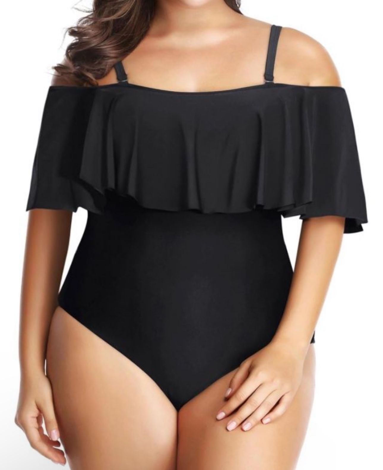 Women Off Shoulder Plus Size One Piece Swimsuits Tummy Control Bathing Suits Ruffle Swimwear