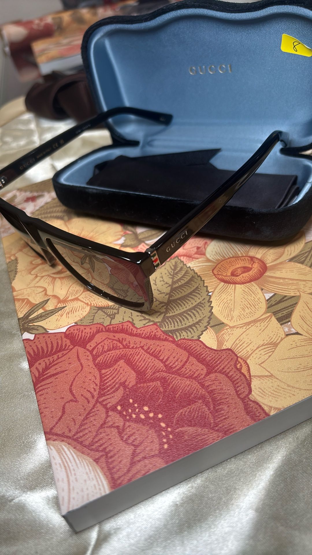Classic and sophisticated, these Gucci black glasses feature signature green, red, and green stripes on the side temples. Elegant and versatile, they’re perfect for an everyday look with a touch of luxury. Details: • Authentic Gucci glasses • Black frame • Green, red stripe detailing on side temples • Elegant, versatile, and comfortable for daily wear Includes: • Original Gucci case • Gucci dust bag A timeless designer accessory that complements any style.