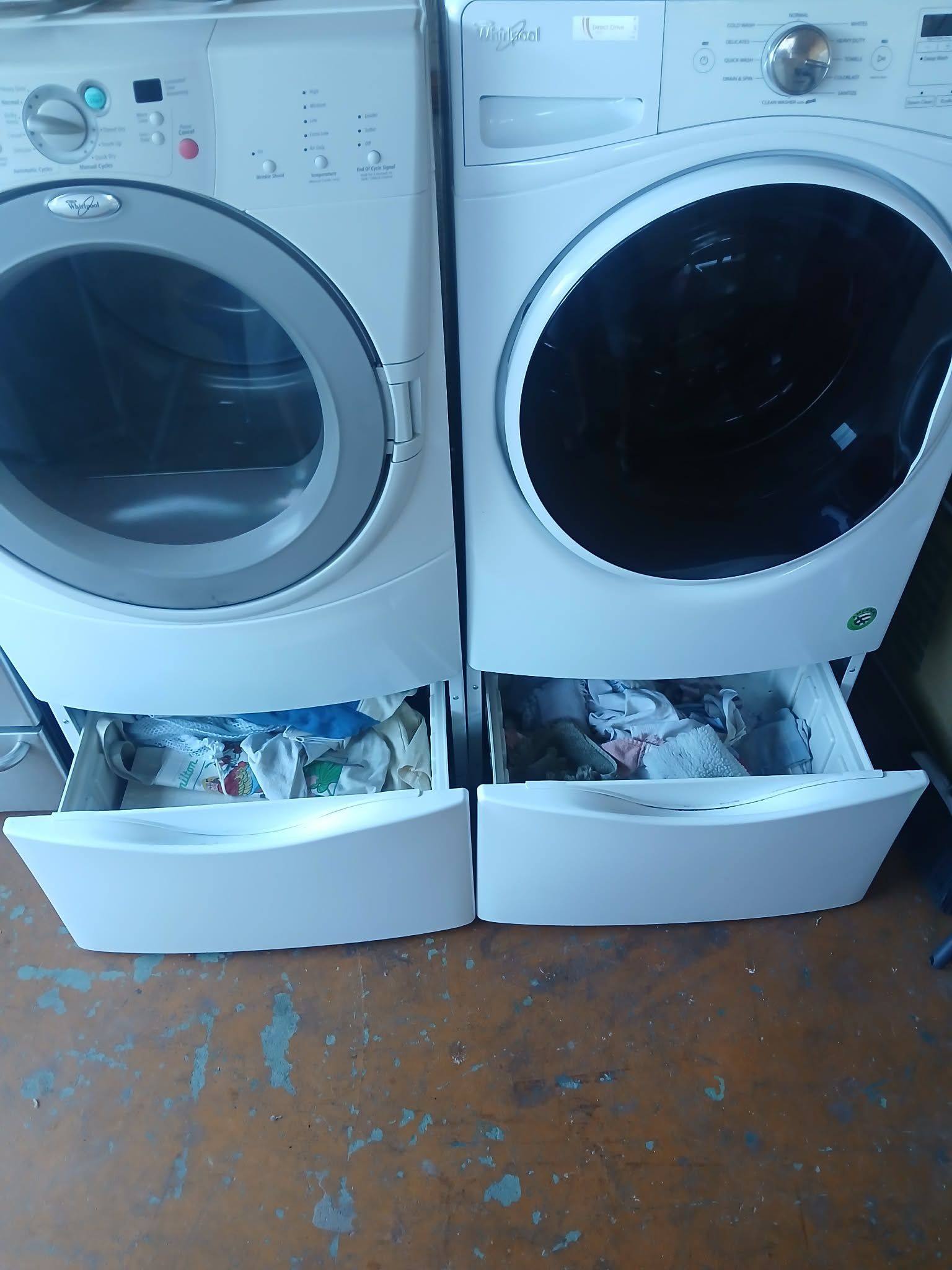 Whirlpool Washer & Electric Dryer on stands with drawers. PRICED TO SELL $350 FOR SET. CAMELBACK RD AND I-17 FREEWAY.