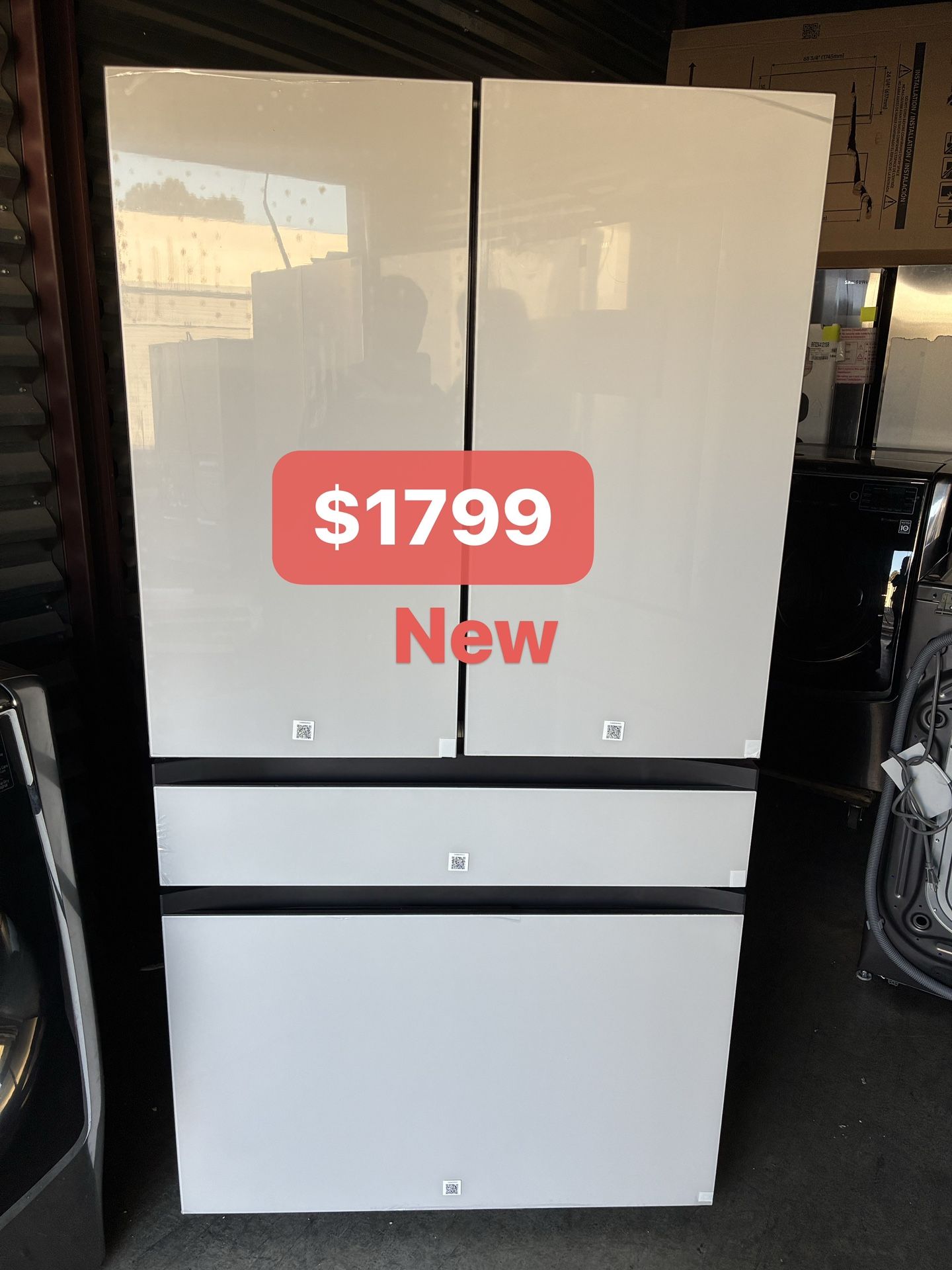 Samsung Bespoke 29 cu. ft. Standard Depth 4-Door French Door Smart Refrigerator in white glass with Beverage Center