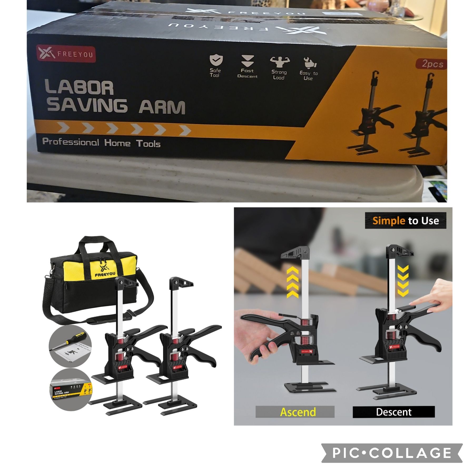 Labor Saving Arm Jack(2 Pcs),Height Lifting Device with Portable Bag,Suitable for Door & Window Lifting,Drywall,Tables Lifts etc(13inch)