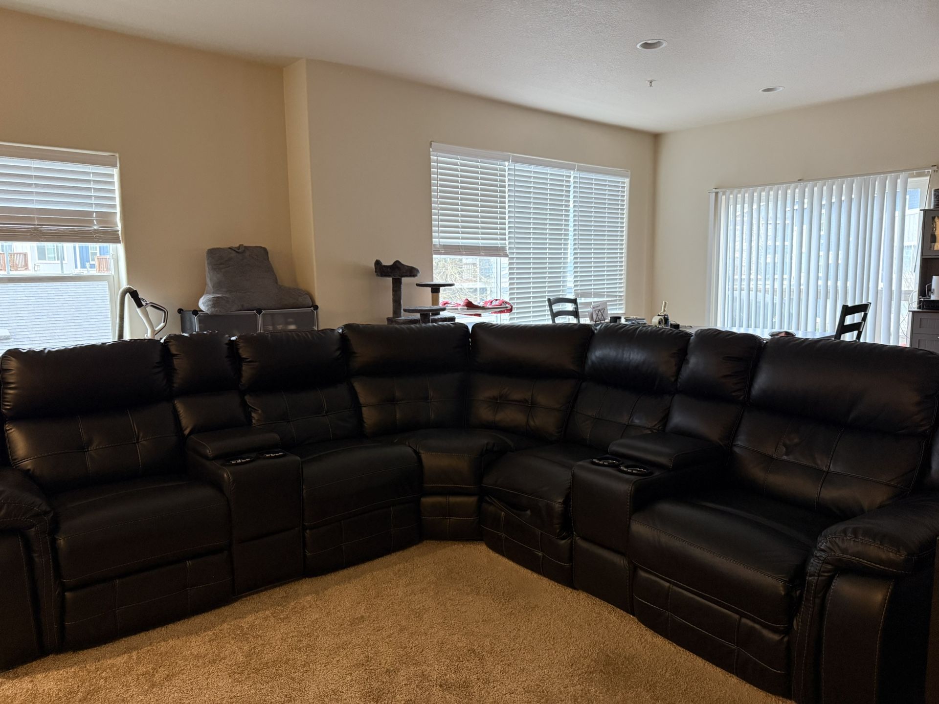 Bought a year ago but are moving and need to downsize. Has some general wear but overall in great condition. 4 reclining seats, 4 cup holders and 2 deep cubby’s. Blue LED lights.