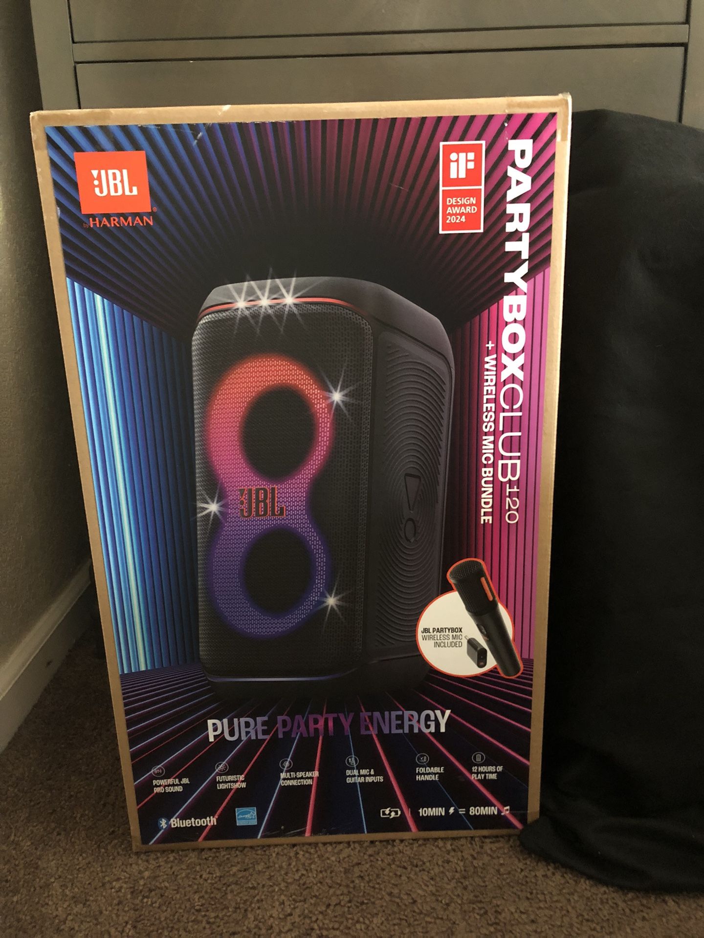 JBL PARTYBOXCLUB 120 + WIRLESS MIC Box was opened but speaker is BRAND NEW! Microphone was never used still in packaging. Comes with everything you would get from the manufacturer brand new. I will stand behind my items. ABSOLUTELY PERFECT condition. Purchased from Costco for 449$ plus tax!
