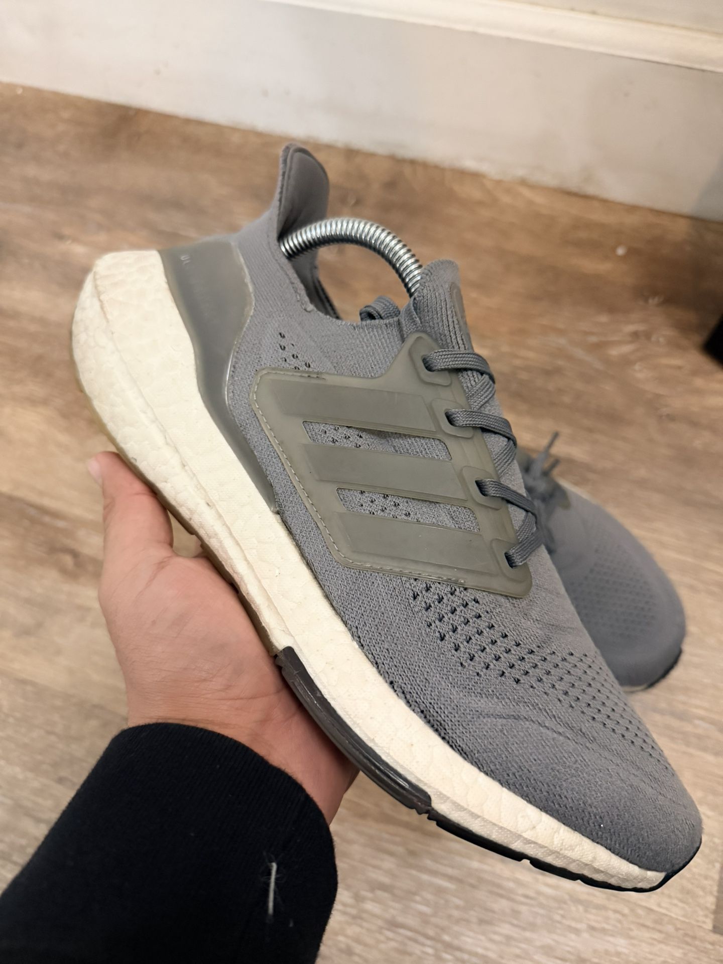 Adidas UltraBoost 21 Mens Sz 9 or 10 Women Gray White Running Shoes Sneakers FY0381 No box Good condition $45