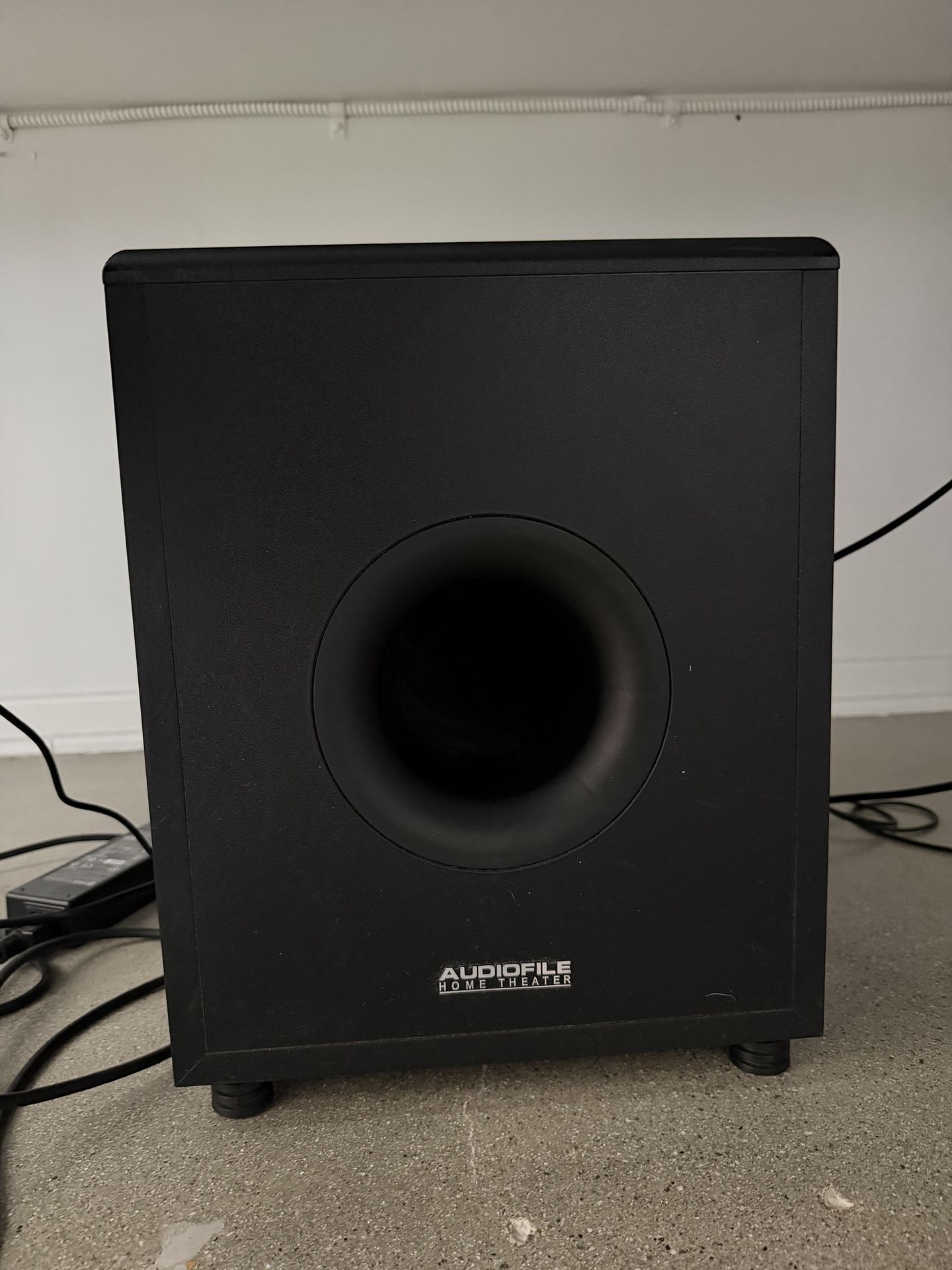 Audiofile home theater subwoofer. 15 in tall. Good for music or movies. No cables included (besides power) cash only