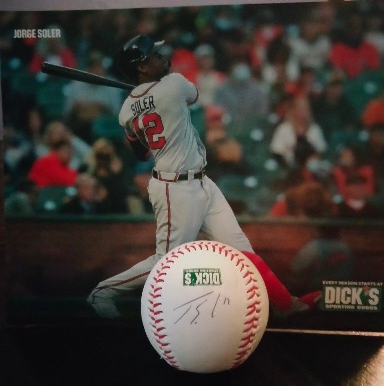 Atlanta Braves Player JORGE SOLER Post Card And And Signed Baseball